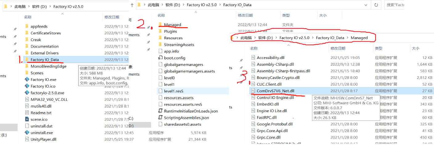 然后在软件所在位置找到Factory IO_Data双击找到Managed双击找到ComDrvS7V6_Net.dll,将其替换掉。