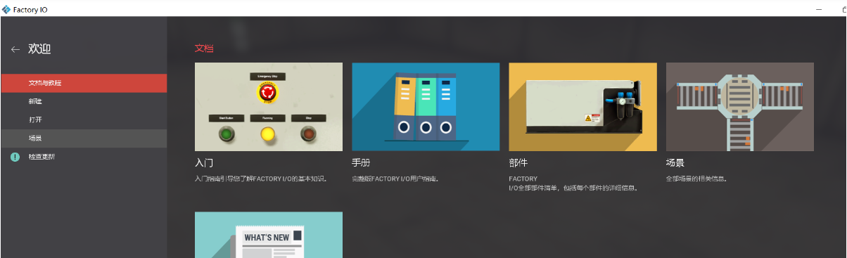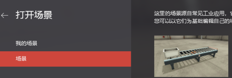 2.打开factoryio软件,在文件中找到打开,选择第一个场景打开: