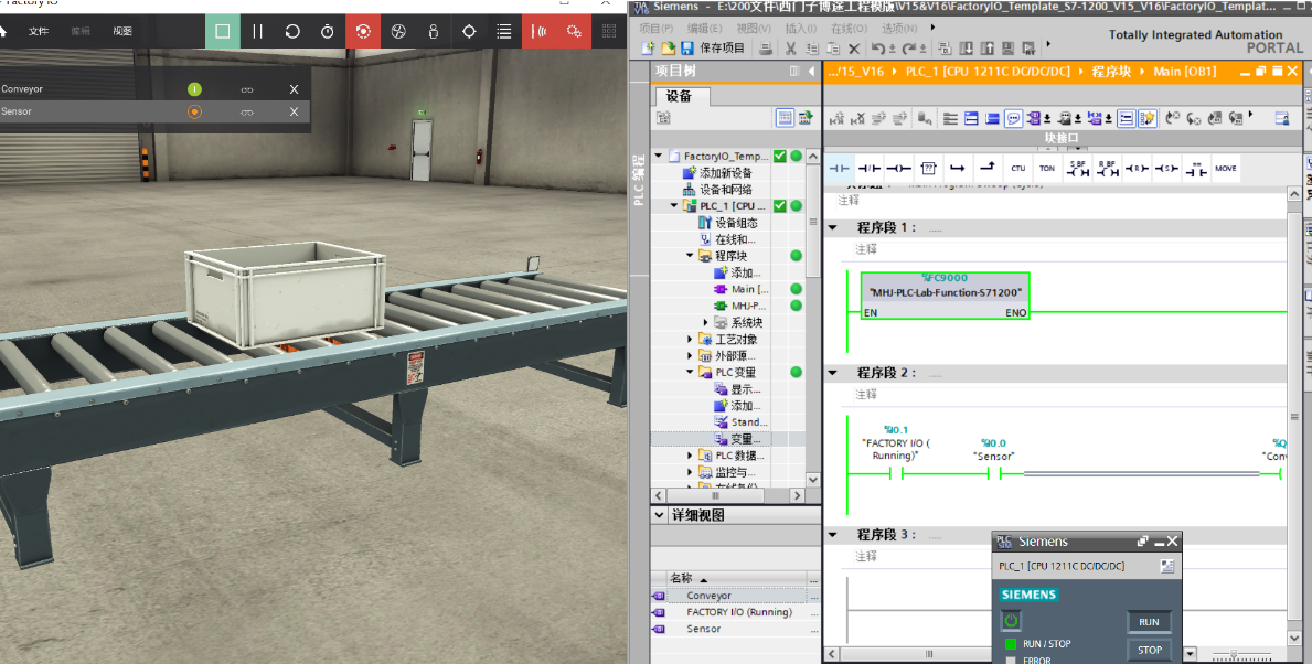 factoryio软件是一个虚拟仿真实验室,工业场景仿真的软件,它可以与真实硬件连接也可以通过仿真进行连接,和PLC在一起有很大的发挥空间,在这里提供软件的安装和使用,如何和1200PLC进行仿真,仿真编写正反转。